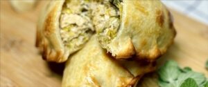 Chicken, leek, gorgonzola, salt, cayenne pepper. Dough: Wheat flour, fat margarine coil, water, salt, acidulants, stabilizers